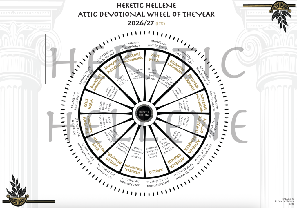 To get your free PDF of the Heretic Hellene Attic Devotional wheel of the year just subscribe to our monthly newsletter below.
